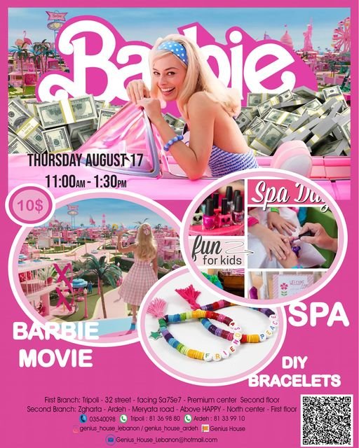 This Thursday will be a special day for GENIUS HOUSE girls from 6 to 12 years old, with the movie #Barbie (edited version)